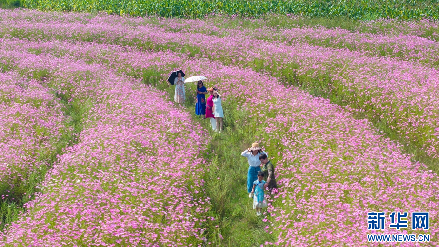 秋日是什么顏色的?你可能會回答,是滿目金黃,是疊翠流金,又或者是萬山紅遍。但在云南省大理白族自治州洱源縣鳳羽鎮,這個答案還可以是粉色!近日,鳳羽鎮成片的波斯菊集中開放,以粉色為主的花朵簇擁搖曳,匯成一片浪漫的花海,美景如畫,為秋日增添了一抹靚麗的粉色,也為市民和游客增加了一個秋日出游好去處。(羅新才 攝影報道)