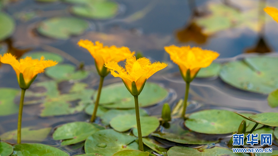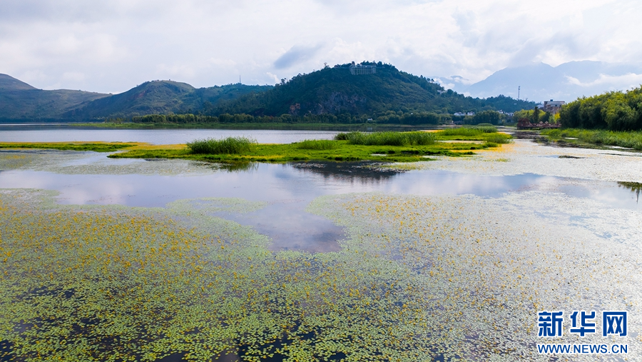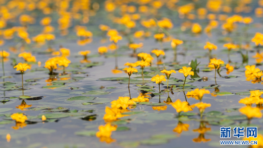 “參差荇菜,左右流之?!比绻阆脲忮祟H具浪漫色彩的水生植物荇菜,那么地處云南洱源縣的茈碧湖,絕對是一個不錯的選擇。秋日的茈碧湖,“一湖碧水半湖荇”,連片的荇菜花開正盛,與藍天、碧水、蘆葦相映成趣,共同構成了一幅動人的生態畫卷。(羅新才 李雪梅 攝影報道)