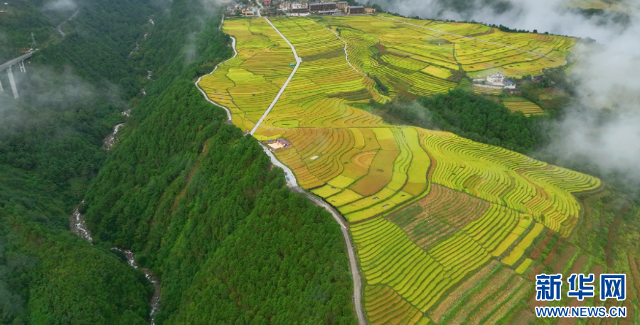 近日,云南省怒江傈僳族自治州貢山獨龍族怒族自治縣丙中洛鎮東風村,迎來了專屬秋日的動人風光。隨著稻谷成熟,稻田披上金黃的衣裳,放眼望去,遼闊的大地被染成金黃,與繚繞的云霧、青翠的山巒、遠處的村莊,共同構成一幅人與自然共生的和美畫卷。(完)