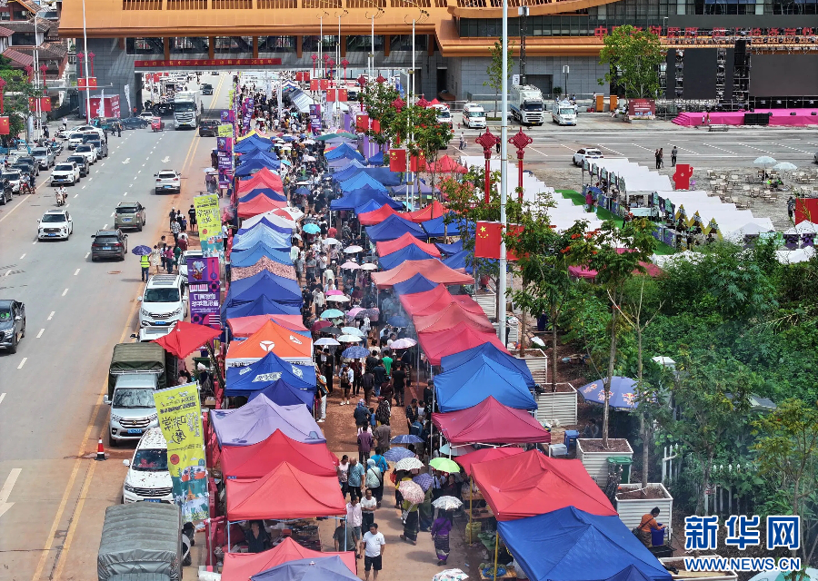 在比賽場地外,沿街綿延約1公里的“趕擺”集市熱鬧非凡?!摆s擺”在傣語里是“趕集”的意思,集市上吃喝玩樂俱全,展現著當地的特色民族文化和地域風情。