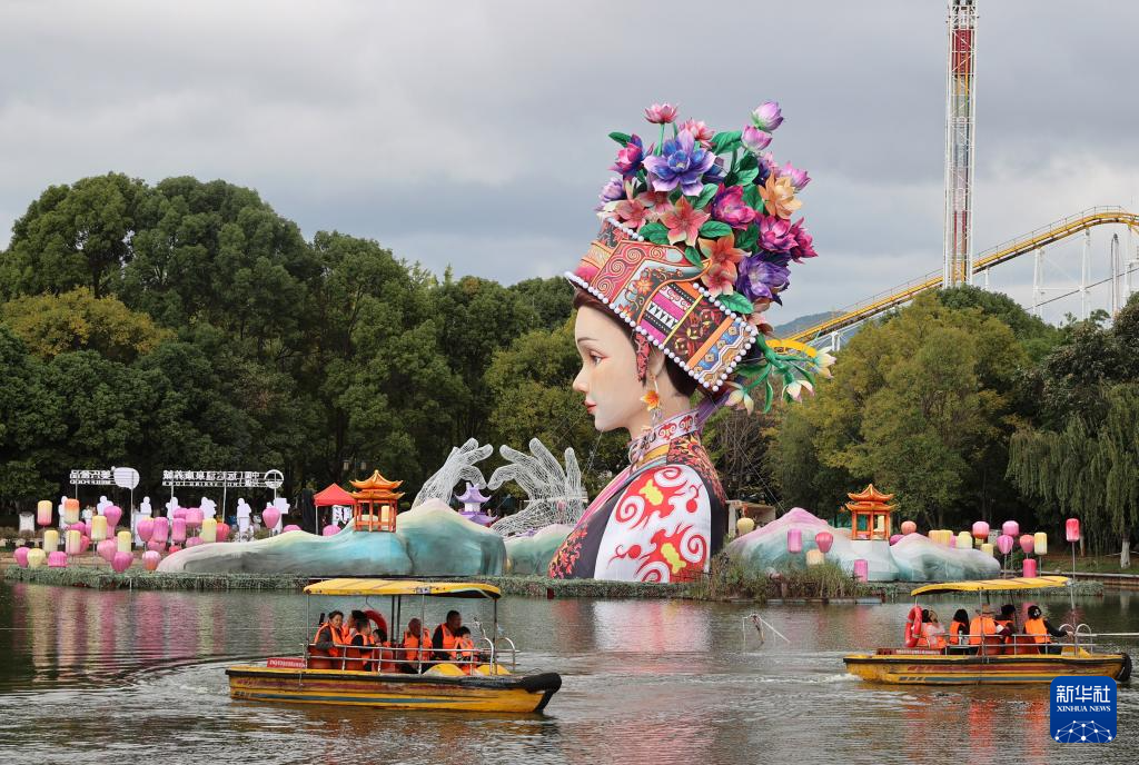 10月6日,在云南省昆明市大觀公園,游客在乘船游覽。新華社發(梁志強攝)