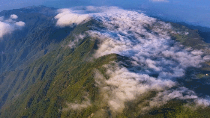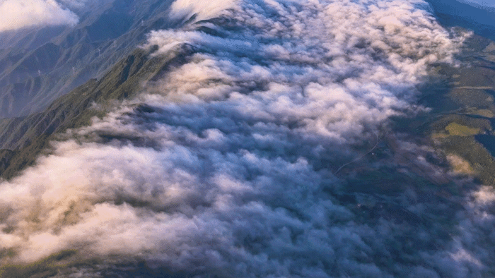 近日,在云南省昭通市大關縣,攝影師拍攝到山巔之上,白云仿若倒瀉,絲絲縷縷在山間繚繞、翻涌,壯闊而綺麗的景致令人驚嘆。(完)(唐應平 何桂花)