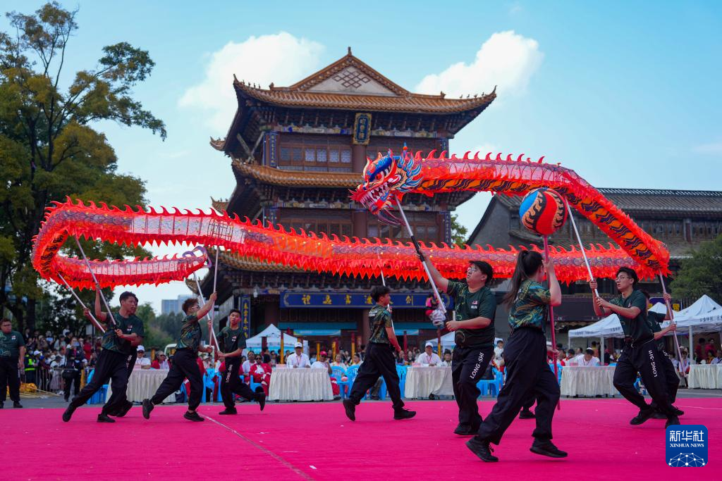 10月19日,廣州體育學院龍獅隊在傳統舞龍項目中比賽,最終他們獲得該項目金獎。新華社記者 陳欣波 攝