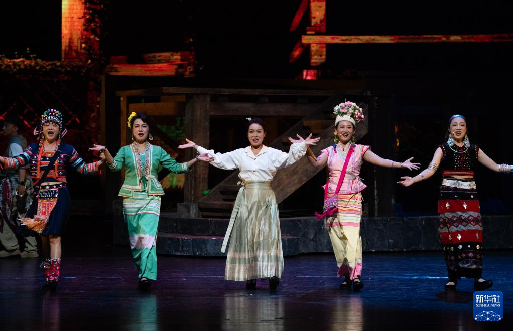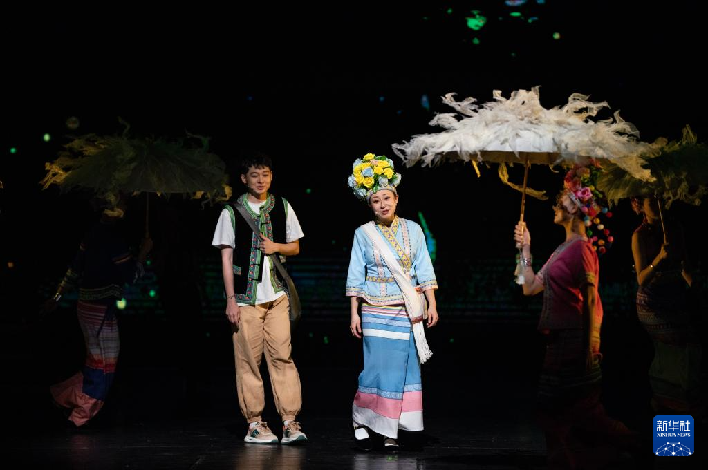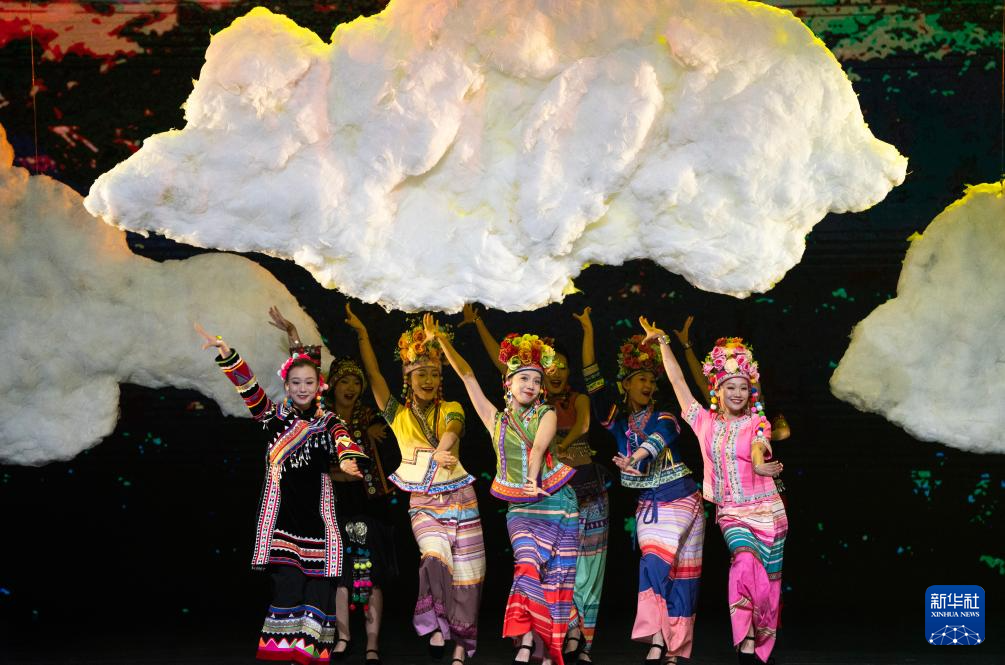 10月18日晚,演員在云南省大劇院表演音樂劇《景邁有嘉木》。新華社記者 陳欣波 攝