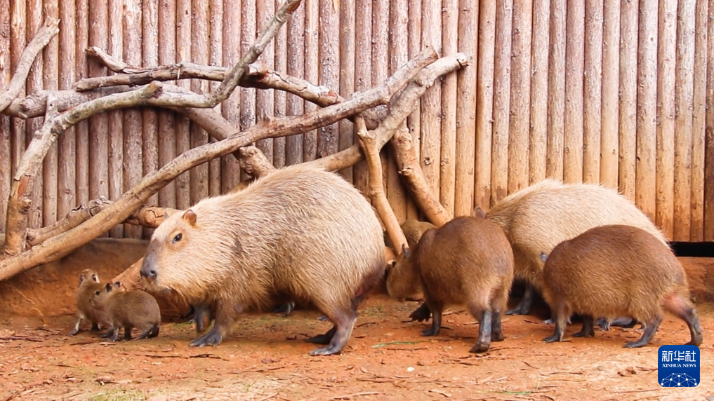 近日,云南野生動物園內,一對水豚“夫婦”成功育出“五胞胎”。