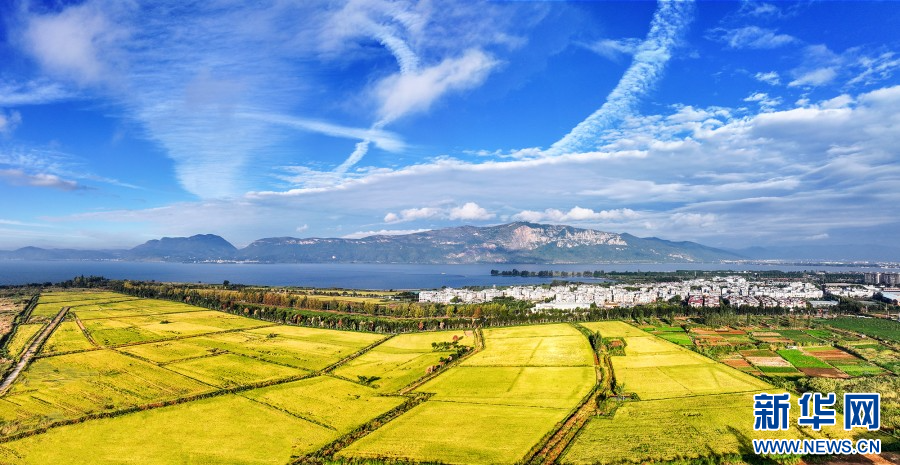 近日,云南省昆明市官渡區六甲街道福保社區千畝稻田迎來豐收。成熟的谷穗在陽光下閃耀著金色的光芒,微風拂過,稻田泛起層層波浪。(完)(周旭)