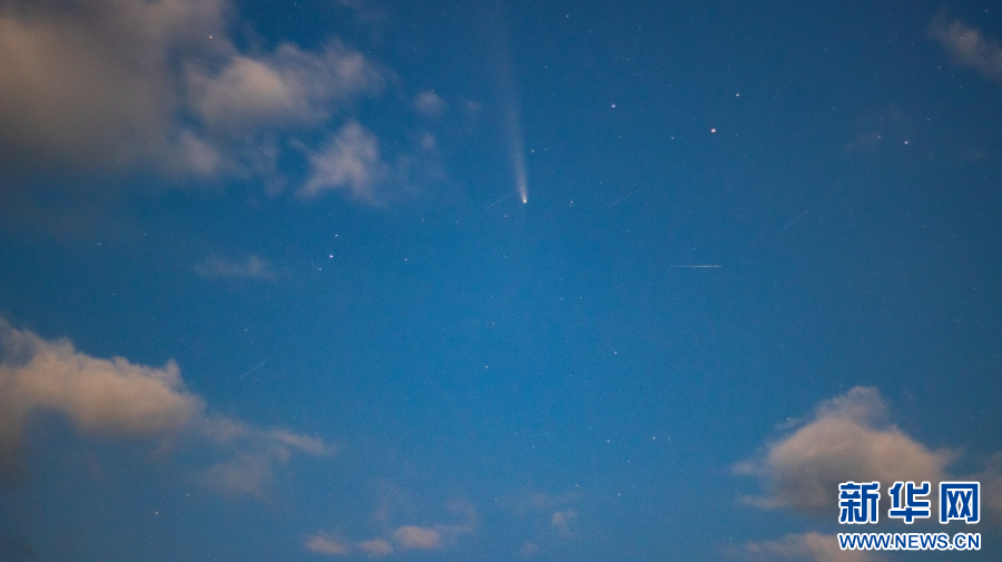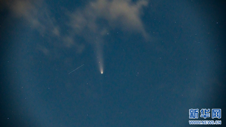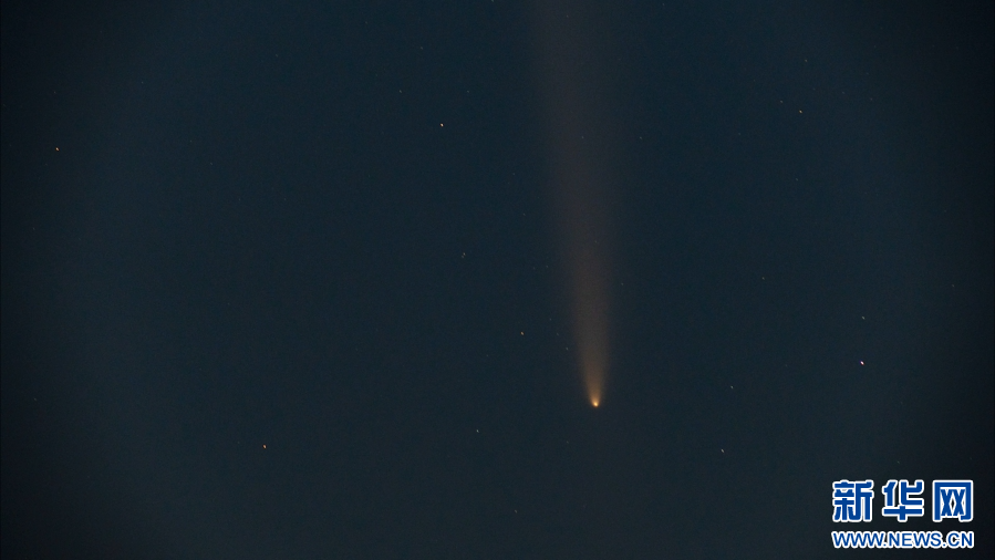 傍晚時分,隱約可以看到紫金山-阿特拉斯彗星拖著長長的尾巴。隨著天空越來越暗,彗星越發明顯,閃耀著璀璨光芒。(完)(周應彪 趙齊源 楊沖楷)