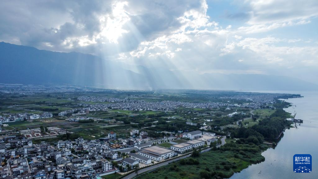 6月5日拍攝的大理蒼山、洱海及村落景觀(無人機照片)。新華社記者 王靜頤 攝