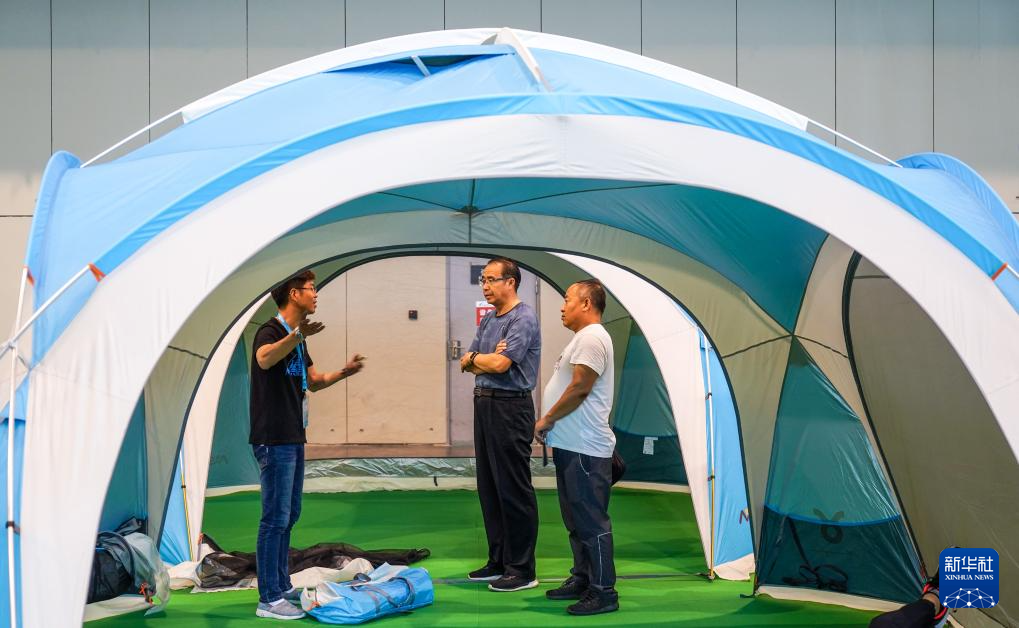 2019年6月20日,工作人員為參觀者介紹戶外帳篷。新華社記者 李博 攝