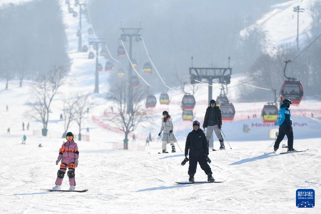 2月11日,滑雪愛好者在吉林市萬科松花湖度假區滑雪。新華社記者 張楠 攝