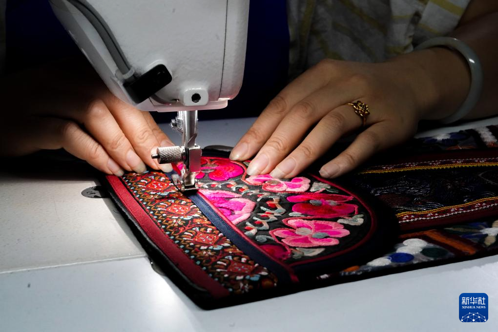 8月27日,在昆明一處服裝制作工作室內,一名工作人員制作參展彝繡服飾。新華社記者 陳欣波 攝