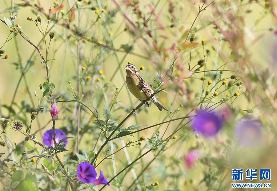 這是在昆明福保村拍攝到的國家一級重點保護野生動物黃胸鹀(10月22日攝)。新華網發(楊學飛 攝)