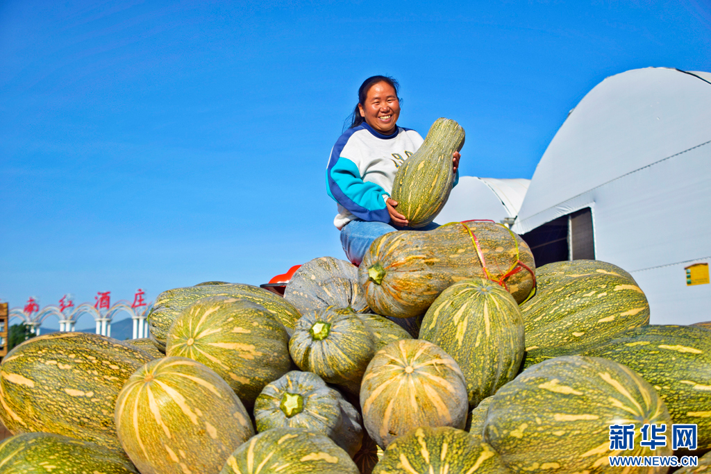 種植戶在葡萄園里采摘南瓜(10月27日攝)。新華網發(趙樹龍 攝)