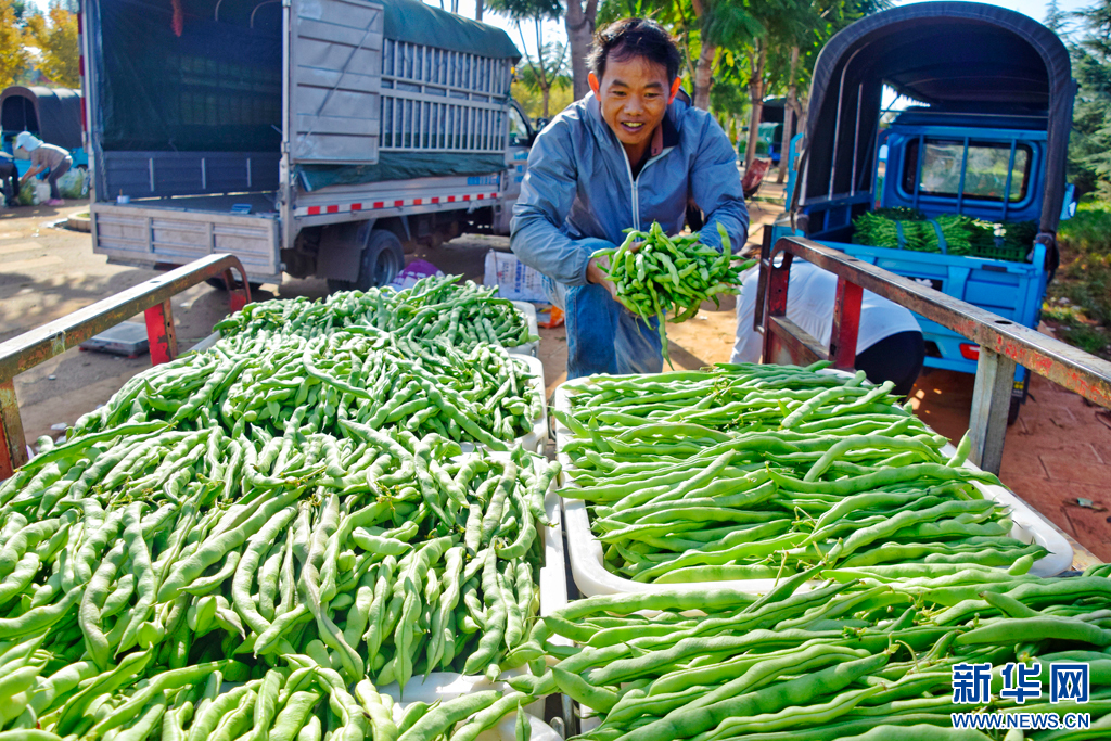 種植戶在采摘無筋豆(10月27日攝)。新華網發(趙樹龍 攝)