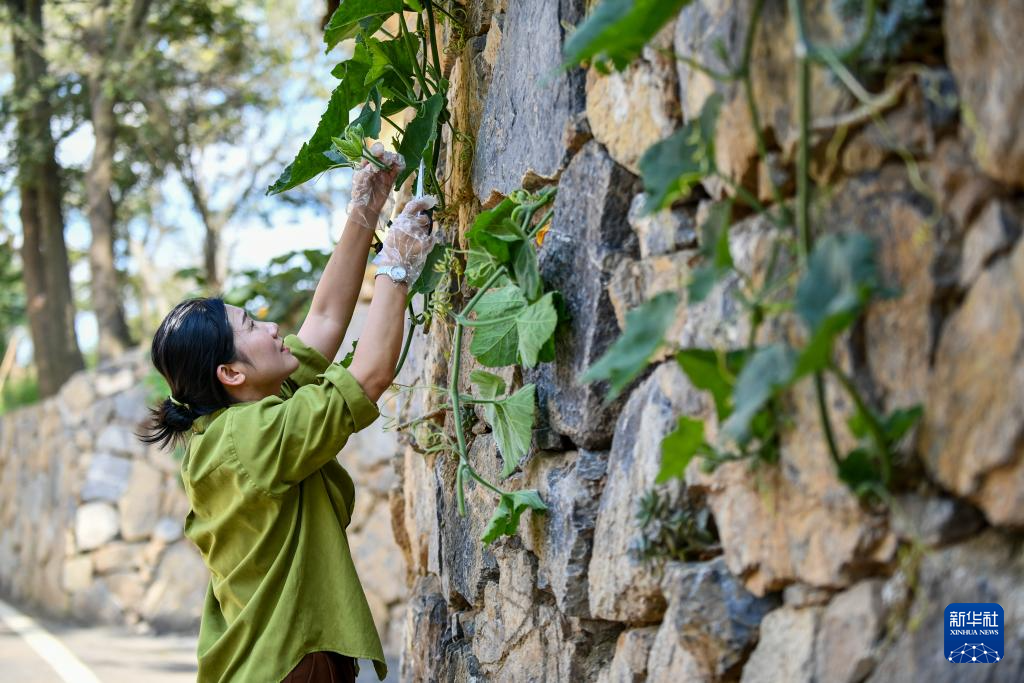 10月30日,土瓜沖村一名民宿經營者在村里采摘南瓜尖。