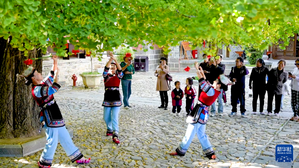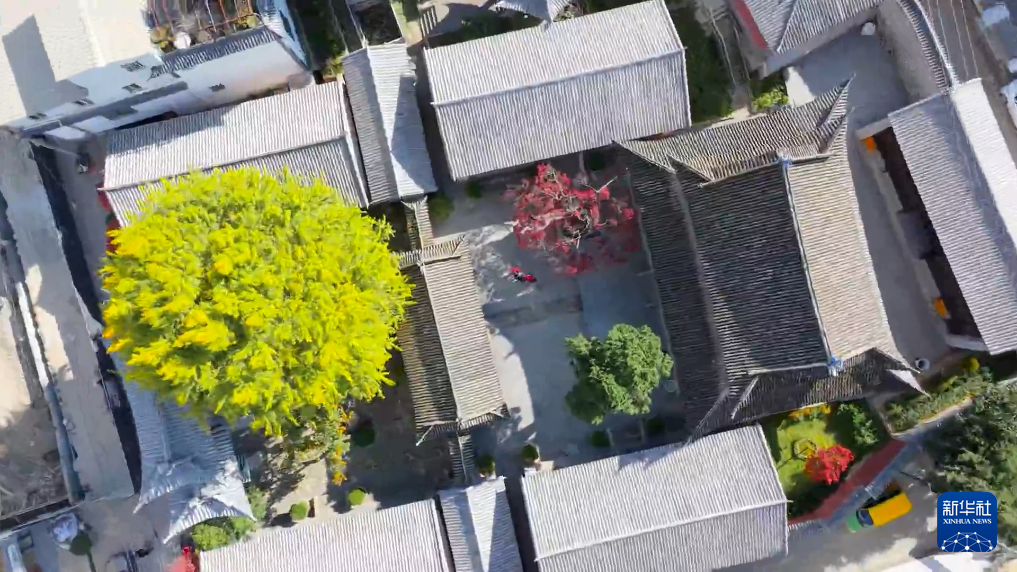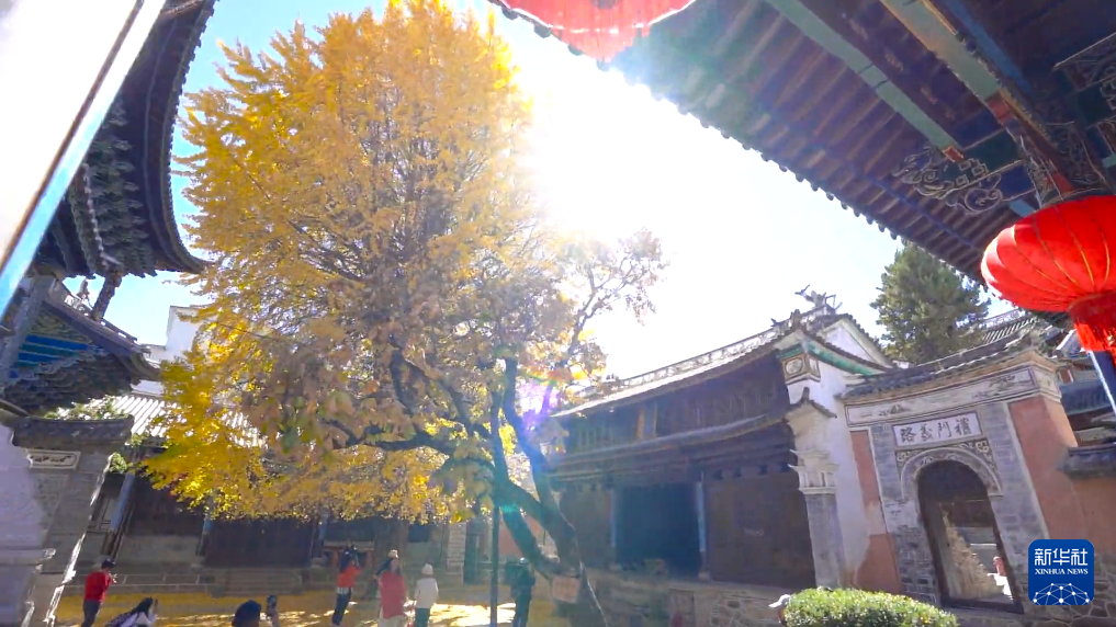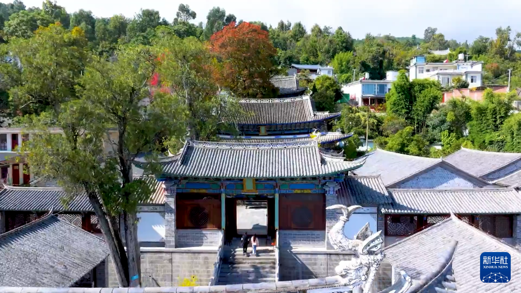深秋時節,在云南省大理白族自治州洱源縣,古建筑與古樹交相輝映,構成了一幅動人的秋日畫卷。