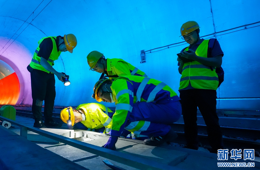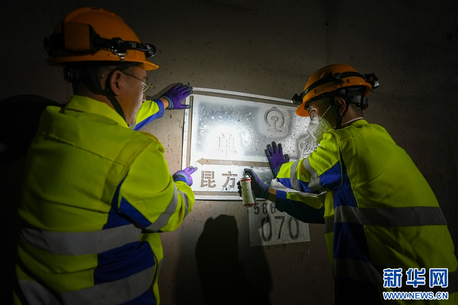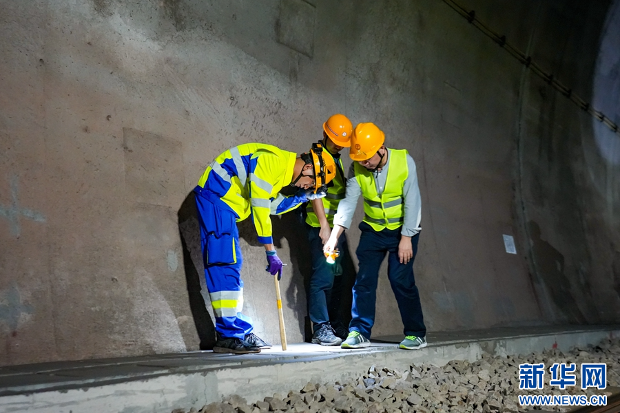 作業人員在隧道里對排水溝進行檢查(攝于10月29日)。新華網發(殷學合 攝)