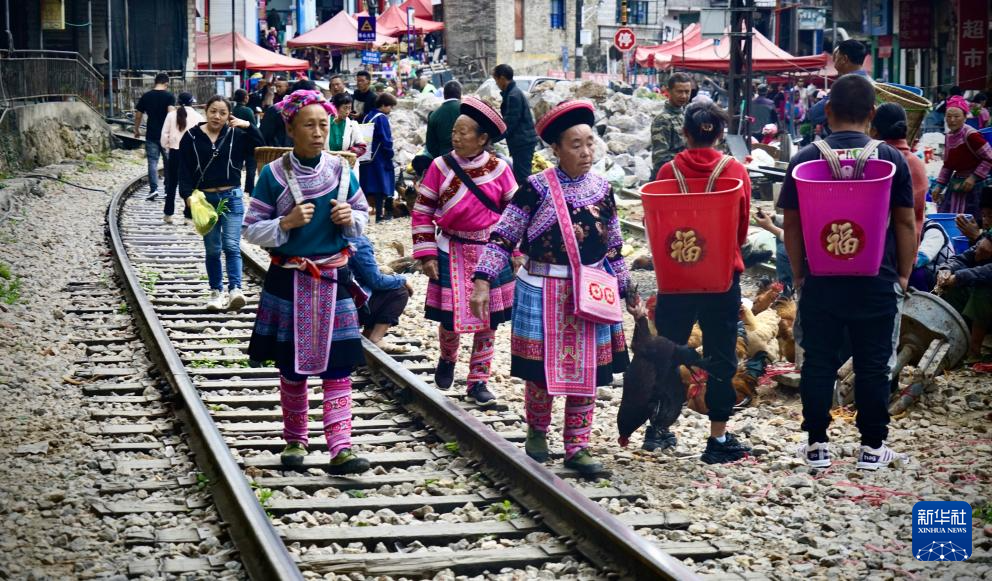 2023年2月20日在云南省紅河州屏邊縣白河鎮拍攝的“火車集市”。新華社發(劉紅波 攝)