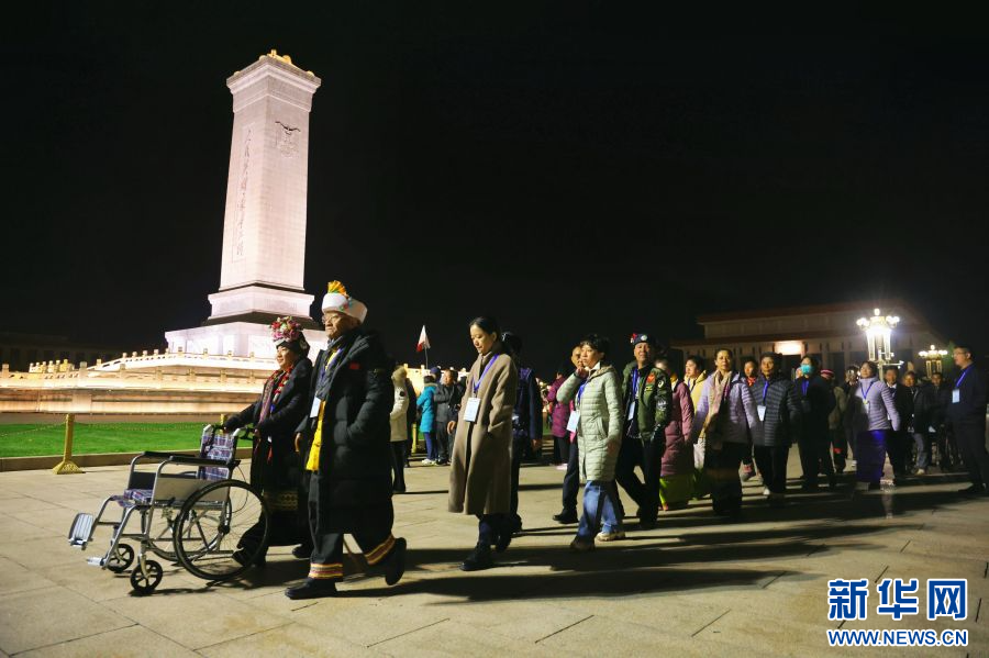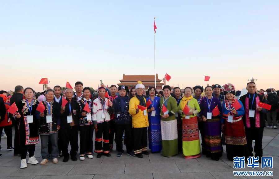 普洱民族團結誓詞碑盟誓代表后代們前往北京天安門廣場(11月6日攝)。新華網發(普洱市融媒體中心 供圖)