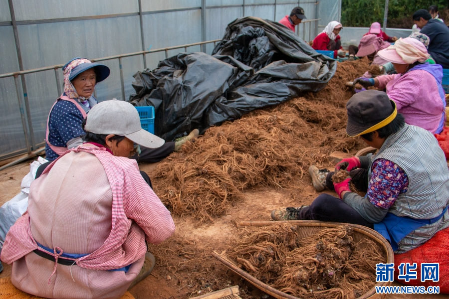 工作人員正在分揀藥材(116日攝)。新華網發(和萱 攝)