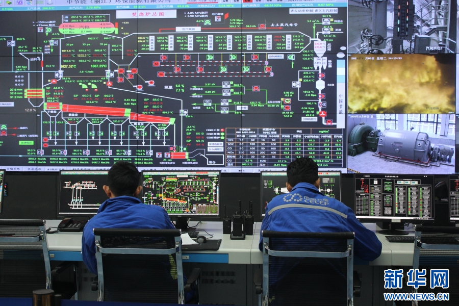 麗江市生活垃圾焚燒發電項目的中央控制室(115日攝)。新華網發 和新蘭 攝