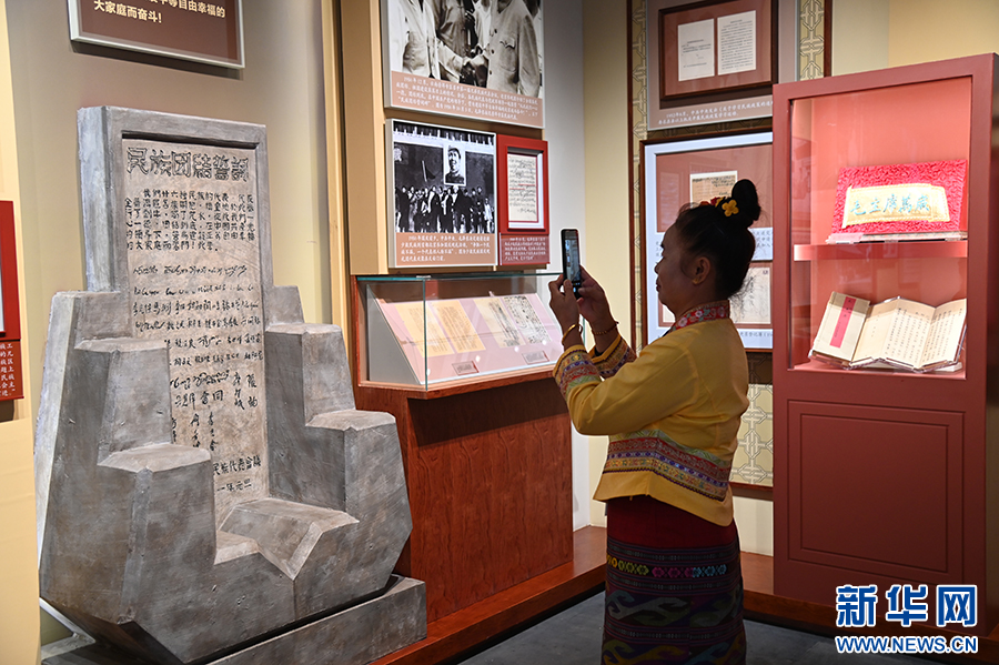趙珍拍攝普洱民族團結誓詞碑樣品(11月8日攝)。新華網發(中國共產黨早期北京革命活動紀念館供圖)