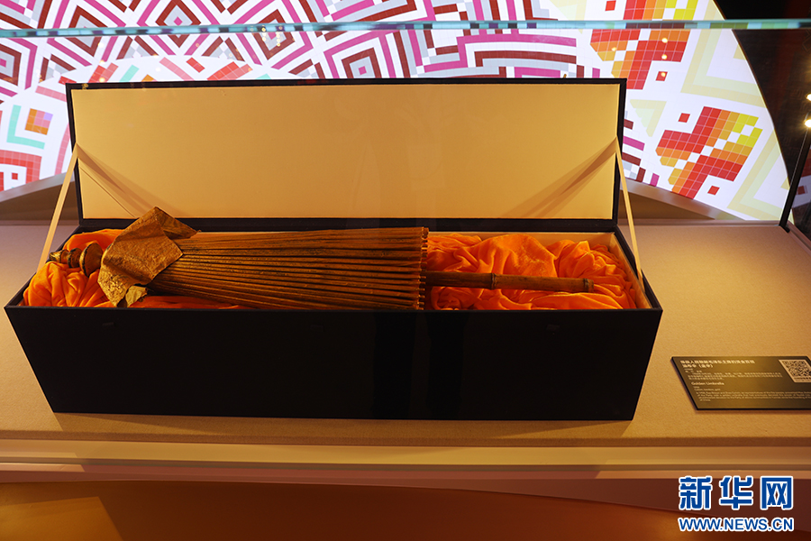 展柜內存放著召存信等進京獻上的金傘(11月8日攝)。新華網 范芳鈺 攝