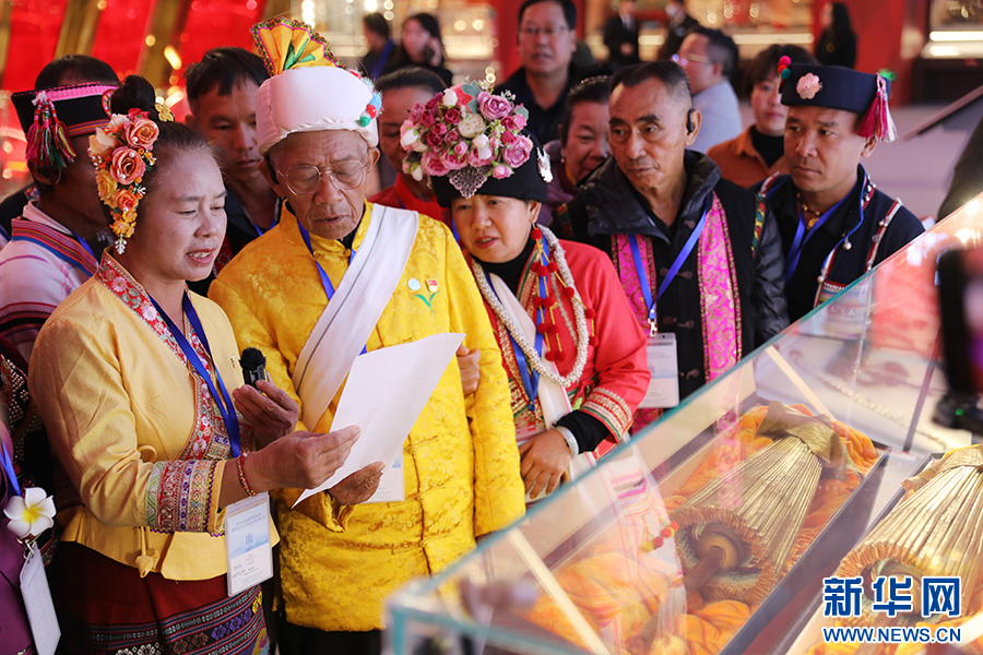 11月8日,在北京的民族文化宮,云南普洱民族團結誓詞碑盟誓代表后代趙珍第一次見到了70多年前,外公召存信進京獻上的金傘,站在展柜前,她久久無法平復內心的激動。