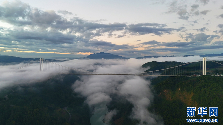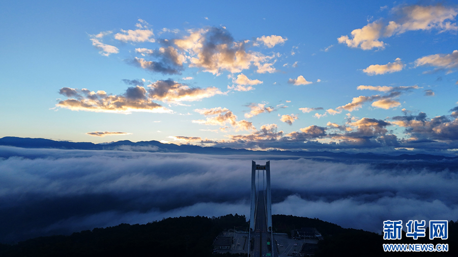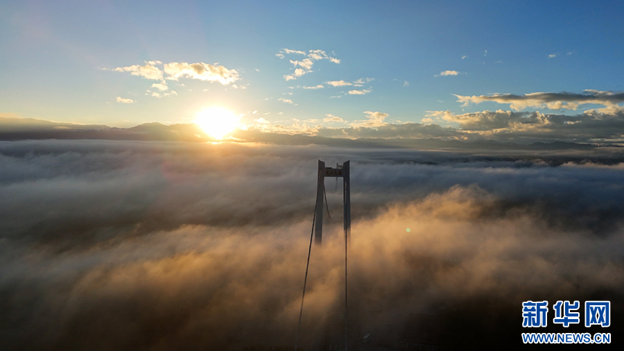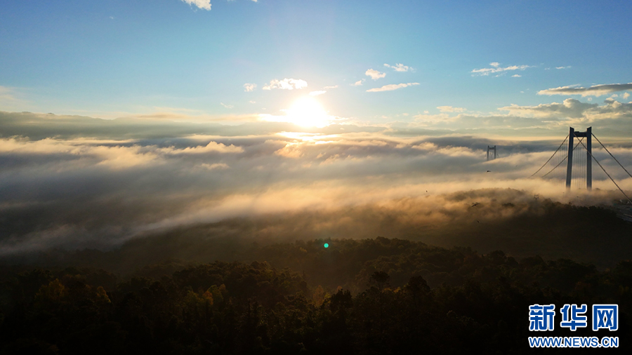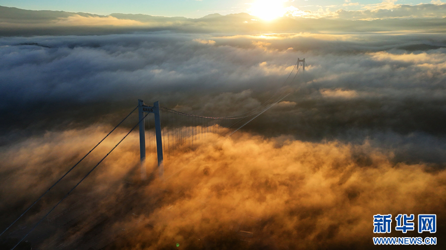 云南龍江大橋立于云海之中(11月11日攝)。新華網發(趙輝 攝)