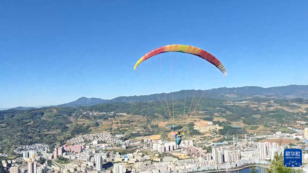11月16日至17日,“世界錫都個舊2024滑翔傘特技公開賽”在云南省個舊市舉辦。來自全國各地的100余名競技者上演了精彩的空中特技比拼。選手在空中做出旋轉、筋斗、大幅度螺旋等特技動作,比賽以選手動作難度和完成情況作為評判依據。