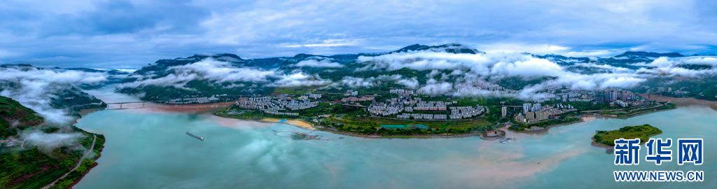 雨后云霧繚繞的江畔小城(10月6日攝)。新華網發(曾三東 攝)