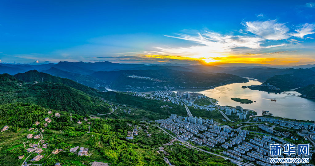 朝陽映襯下的江畔小城綏江,水清岸綠景美(10月23日攝)。新華網發(曾三東 攝)