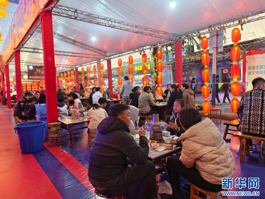 市民游客同吃火塘宴(11月29日攝)。新華網發(張晨 攝)