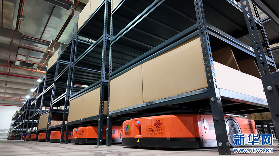 貨場上,巨大的龍門吊能搬運起數十噸的集裝箱;而在騰晉物流5G智能倉庫內,1臺小小的AGV機器人就能托起1噸重的貨物輕松穿行。