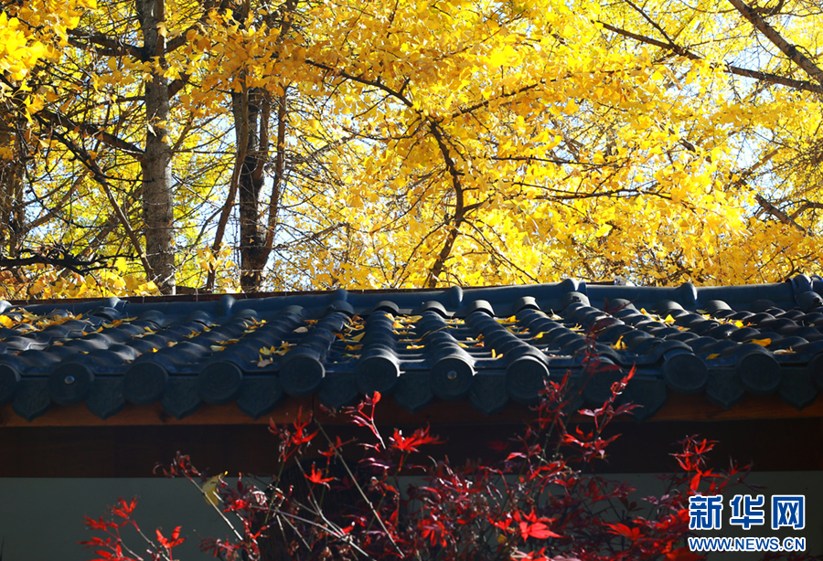 金黃的銀杏與紅楓相映成趣(12月1日攝)。新華網發(趙輝 攝)