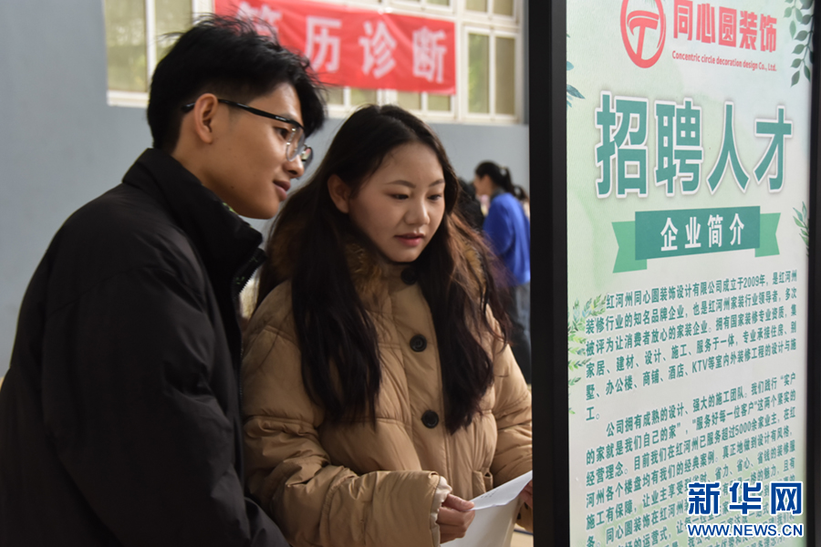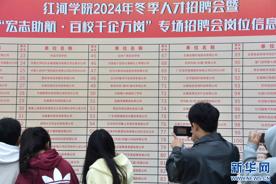12月13日,在紅河學院專場招聘會上,求職者在查看崗位信息。新華網發(薛瑩瑩 攝)