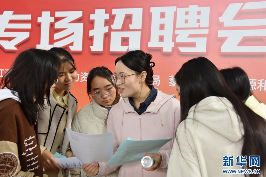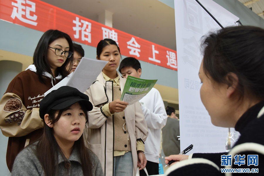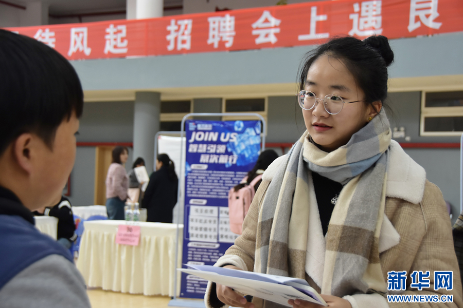 12月13日,在紅河學院專場招聘會上,招聘方(中)在給求職者介紹崗位信息。新華網發(薛瑩瑩 攝)