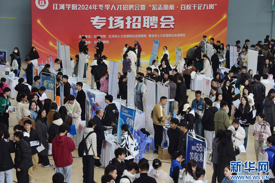 近日,紅河學院2024年冬季人才招聘會暨“宏志助航·百校千企萬崗”專場招聘會在紅河學院舉行。本次招聘會吸引了來自山東、江蘇、福建、廣東、上海、云南等6個省市的103家用人單位參加,提供涵蓋農林、采礦業、教育業、金融業、制造業、公共管理、媒體、零售業、物流倉儲業等多個熱門行業239個崗位,吸引了近3000余名同學前來參加。據悉,招聘單位共收到簡歷2224份,221名畢業生與用人單位達成初步簽約意向。新華網發(薛瑩瑩 攝)