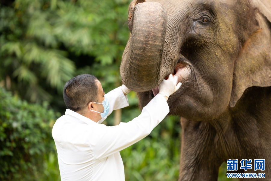 大象醫生保明偉為“然然”檢查身體(資料圖)。新華網發(劉云 攝)