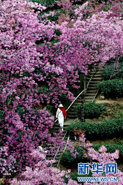 游客穿梭在櫻花谷中(1月1日攝)。新華網發(適志宏 攝)