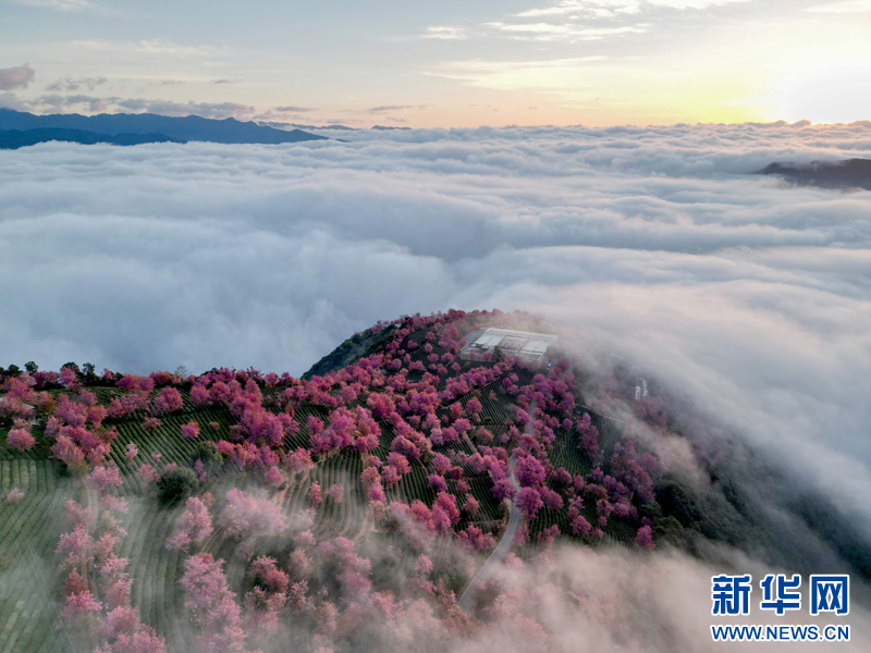 冬日,位于云南省大理白族自治州南澗彝族自治縣境內的無量山櫻花谷進入了冬櫻花最佳觀賞期,云海、茶園、冬櫻花交相輝映,構成了如詩如畫的無量山美景,吸引眾多游客前來觀賞游覽。(完)(適志宏)