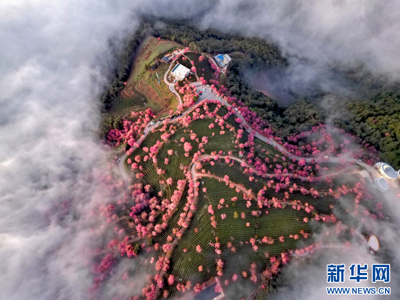 云海翻涌的櫻花谷(1月1日攝)。新華網發(適志宏 攝)