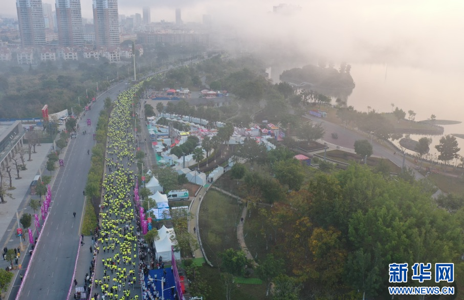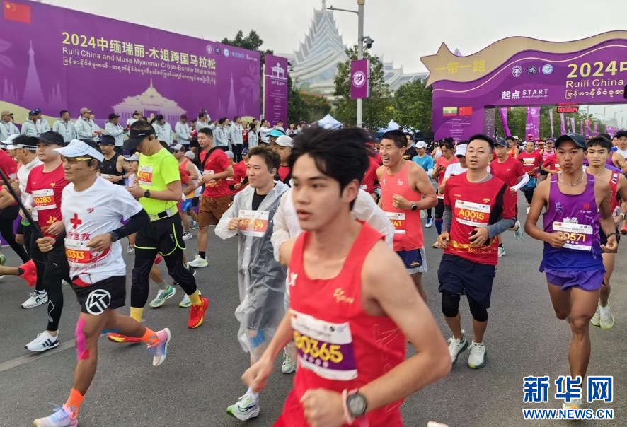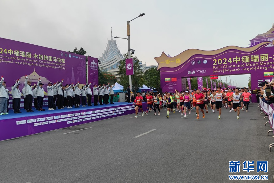 2024中緬瑞麗—木姐跨國馬拉松開跑(1月5日攝)。新華網發(劉奕 攝)