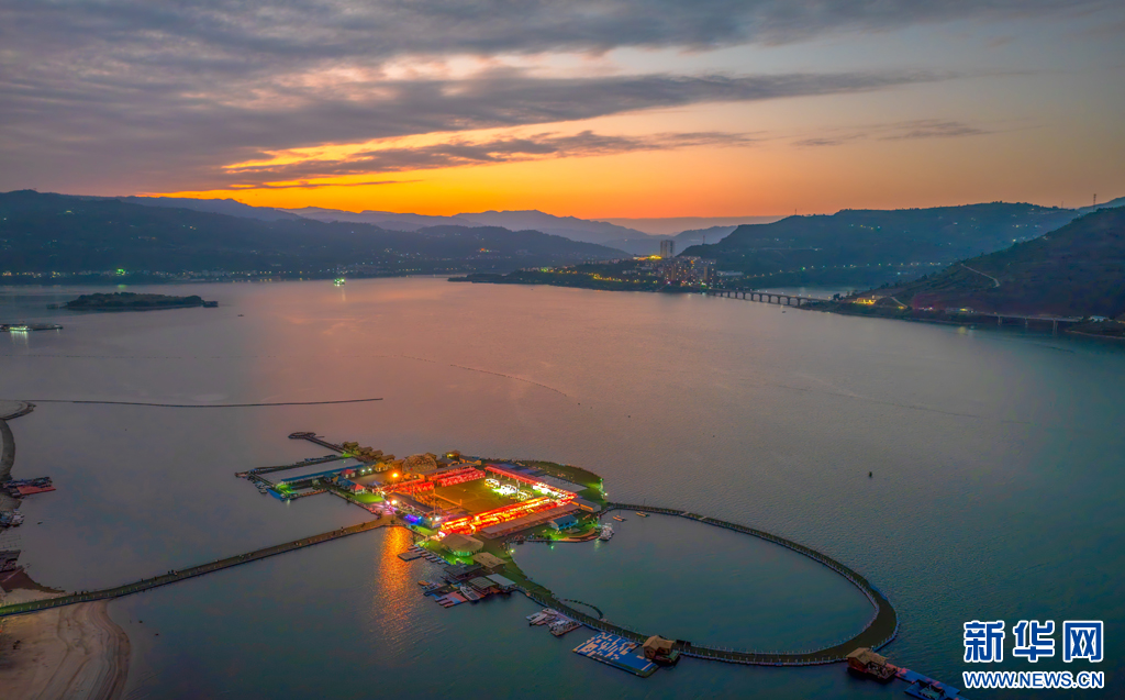 晚霞映照下的綏江水上樂園景區(1月1日攝)。新華網發(曾三東 攝)