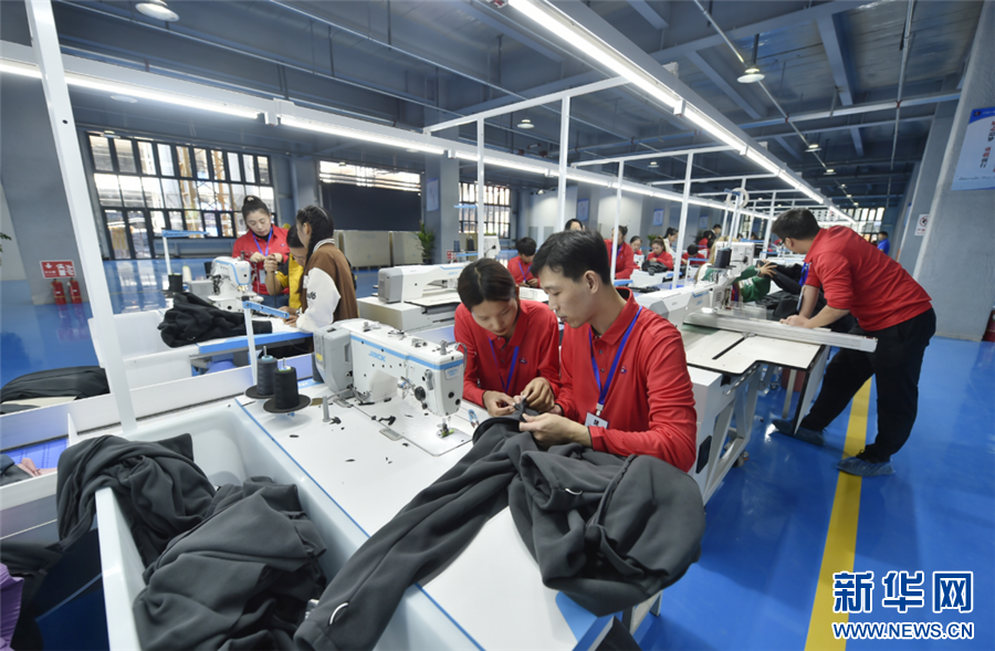 磨憨南坡國際產業示范園首個投產項目三連制衣生產線。新華網發(昆明市委宣傳部 供圖)