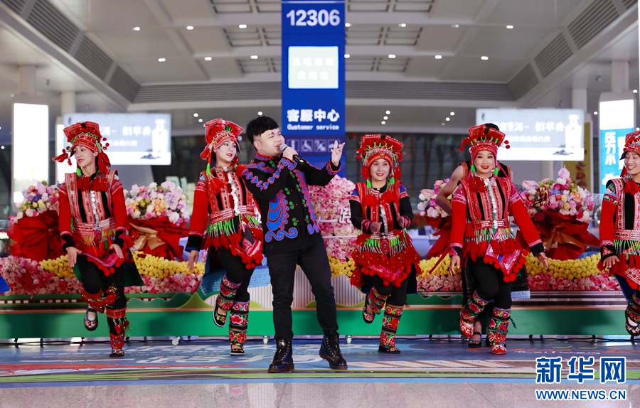 昆明南站出發儀式上的歌舞表演(1月14日攝)。新華網發(徐華陵 攝)