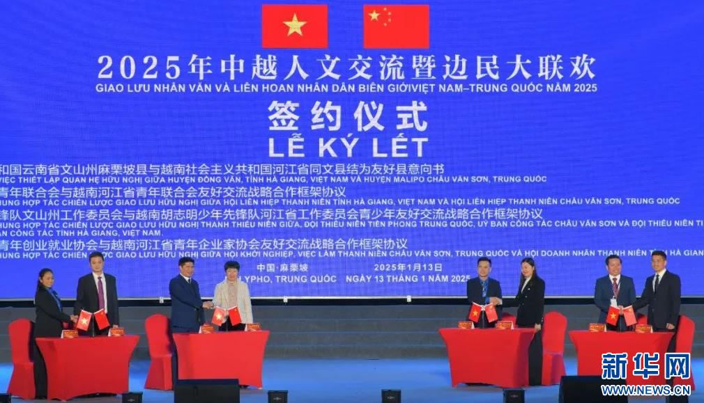 新華網昆明1月14日電 1月13日晚,“同唱友誼歌 攜手創未來”——“文山·睦鄰”2025年中越人文交流暨邊民大聯歡系列活動在云南省文山壯族苗族自治州麻栗坡縣啟動。中越雙方邊民歡聚一堂,共敘友誼、共商合作、共謀發展。