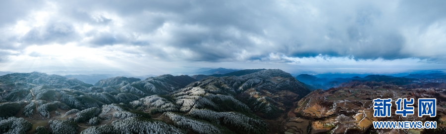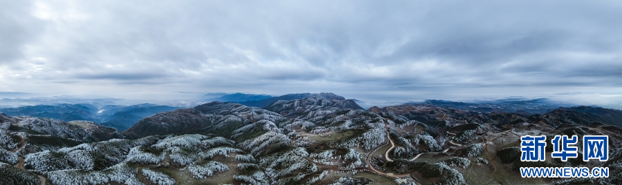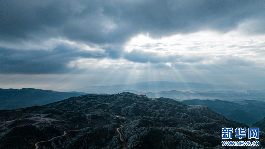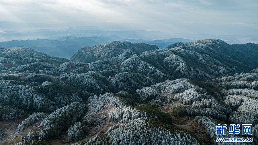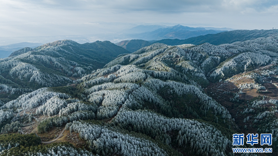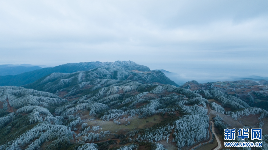 航拍云南梁王山,霧凇景觀繪壯美畫卷(1月13日攝)。