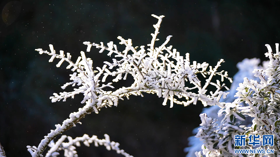 云南梁王山,樹木枝頭晶瑩剔透的冰花(1月13日攝)。