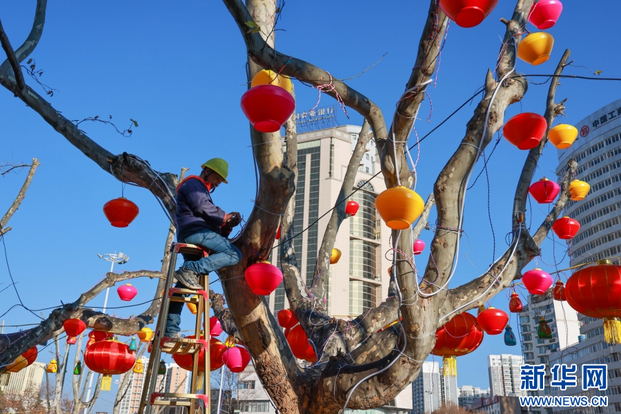 春節臨近,年味漸濃。云南省曲靖市麒麟區在城區主要道路、公園進行燈飾安裝工作,扮靚城市,為新春佳節增添喜慶的節日氛圍。新華網發(孫文來 攝)